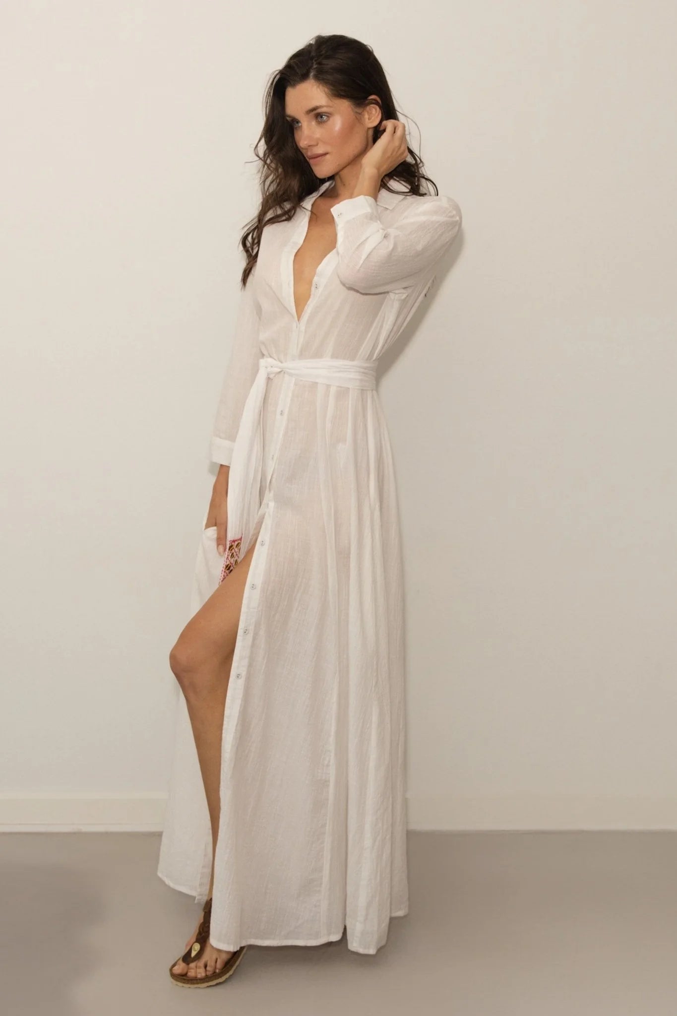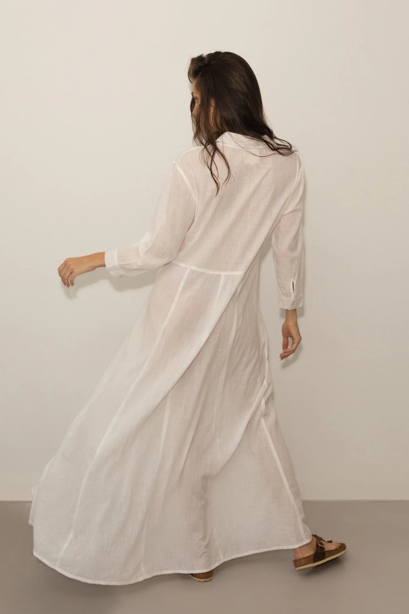 Meet your new wardrobe essential—the Nila Cotton Shirt Maxi Dress! This breezy beauty combines classic shirt styling with an elegant maxi length, giving you the best of both worlds. Crafted from soft cotton, it's breathable and comfortable enough for all-day wear, whether you're running errands or heading out for an adventure.  Dress it up with heels or keep it casual with sneakers—this versatile piece does it all with effortless charm.