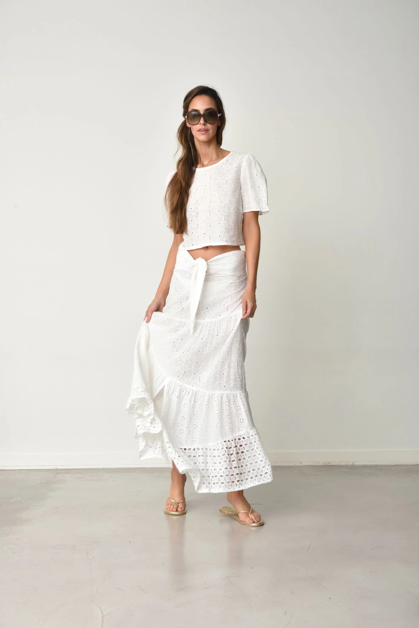 Twirl into effortless elegance with the Biky Eyelet Cotton Maxi Skirt Dress. This charming piece features delicate eyelet detailing that adds a touch of romantic flair to your everyday wardrobe. Crafted from breathable cotton, it's perfect for warm weather adventures, casual outings, or those moments when you want to feel put-together without trying too hard.